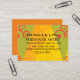 Personalizou este negócio com as suas próprias informações comerciais pessoais. Apresentando tons vibrantes de amarelo, laranja e verde na minha design de cartão de visita, perfeito para artistas de voiceover! Quer você seja um narrador, ator de voz/atriz, artista de dubbing, ator/atriz de personagens, narrador de audiolivros, anunciador de rádio, host de podcast, talento de voz comercial ou ator/atriz de voz de videogame, esta placa fala muito. Saia na indústria com nosso design dinâmico, mostrando seu talento e sua expertise. Elevem a marca e o público cativante com cada palavra. Entre em contato conosco hoje para fazer sua voz ouvir!