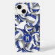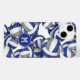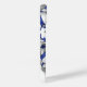 Esta capas de iphone tematizada de vôlei para meninas apresenta azuis de tamanho variado, cinzas e volichões brancos dispostos em um padrão aleatório em um fundo branco personalizável — os painéis azuis e cinzas do volleyball são misturados com um padrão caleidoscópico floral para uma aparência feminina e artística que ainda é esportiva - personalize seu monograma - por katz_d_zynes