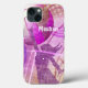 Mala rosa iPhone Se/5/5s de vôlei feminina com gráficos de tema de vôlei em rosa, roxo e ouro e jogadora de vball feminina silenciada pulando na rede - personalize com seu nome - por katz_d_zynes ::: também disponível para outros modelos de iPhone assim como para iPad e dispositivos Samsung .. para outros dispositivos, selecione seu tipo de dispositivo em "A seção Opções de Estilo nesta página... para obter assistência à personalização, simplesmente clique no link "Perguntar a este Designer" abaixo