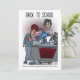 Um cartão com um desenho engraçado sobre suprimentos comprados de volta à escola. O fundo e o texto podem ser personalizados. Arte original de BD Cartoons.