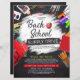 De volta à escola, a arrecadação de fundos apresenta um fundo de chalkboard, listras de giz e material colorido da escola.