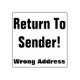 Este design de carimbo apresenta as mensagens "Return To Sender!" e "Wrong Address". Pode ser utilizado para indicar que o correio recebido pode ter sido incorretamente endereçado e deve ser devolvido ao remetente.