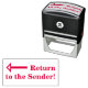Este design de carimbo contém a mensagem "Return to the Sender!" (Retornar ao Remetente!), juntamente com uma forma de seta decorativa. Pode ser utilizado para indicar que o correio postal recebido pode ter sido incorretamente endereçado e deve ser devolvido ao remetente.