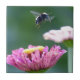 Uma Bumblebee em voo coletando pólen da zinnia para a zinnia.