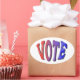 Os autocolantes de voto são um excelente adicional aos seus cartões postais aos eleitores ou aos folhetos e eventos de campanha.