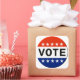 Vinhetas com a imagem de um botão com as palavras Votar, em cores vermelha, branca e azul.