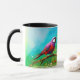 Caça-d'água com pássaros e mantra, de cor brilhante, café/caneca de chá. Escolhi a imagem e então desenhei um mantra do baralho de 100 cartões de pensamento para ir com esta caneca. É personalizável, mas acredito em influências vibratórias do mais alto e esse foi o mantra para essa imagem. Estes são mantras poderosos. Um Mantra é um som. Ele se conecta através da RESONÂNCIA a partes do Espectro de Excelentes, e pode influenciar galáxias inteiras e super-cordas de galáxias. Estes mantras criam uma forma de pensamento que atinge uma ressonância harmoniosa com uma função de onda permanente mais alto. Que encontre seu companheiro de alma e seja uma partida vibracional para ele. Muitas bênçãos para você.