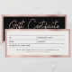 Um belo e moderno viciado véu de rosa dourado rosa e certificado de presente preto com script chic e logotipo comercial. Este design de certificado-presente é ideal para todos os tipos de negócios. Simplesmente personalize e torne-o seu.
