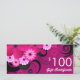 Hibiscus: Fuchsia © Sunny Mars Designs. Certificado de presente personalizável ou cartão de vale-presente com decoração floral de hibisco brilhante, rosa-escuro, roxo ou fuschia. Personalize-o com os detalhes da sua loja. Para um comprovante de 3 dígitos, por favor verifique minha loja.