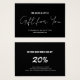 Este produto é perfeito para empresas que querem recompensar seus clientes ou dar um desconto especial. É um comprovante impresso que apresenta texto na moda moderno de roteiro e um design branco e preto minimalista. É uma forma excelente de mostrar aos clientes sua apreciação e encorajá-los a voltar e comprar novamente.