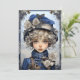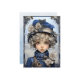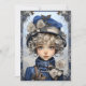 A garota loira mais bonita que dá para sua neta um cartão de Natal. As costas têm desejos de uma bela neta para o Natal de avós com uma pequena versão da imagem na frente
