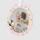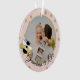 Anuncie seu bebê para estar na avó para estar com este adorável ornamento fotográfico "Vovó para Abelha" em rosa, branco e ouro. Ornamento de abelhão de bumble bonito com pontos de ouro aleatórios, cor de fundo editável e foto. No verso do ornamento, um sobrenome e data de vencimento ou edite para adicionar sua própria mensagem especial à avó a ser.