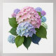Hydrangeas na floração do cheio. Um belo poster que acende a decoração em qualquer espaço. Enviando vibrações alegres e brilhantes.