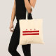 Inclua no orçamento o bolsa com a bandeira de Washington, C.C. Inspiração pela brasão de George Washington. Foi criada por um designer gráfico em 1938. Um design muito simples com bandeira dos Estados Unidos vermelha em um fundo branco.