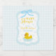 Baby blue gingham baby shower with a hand drawn bow. Water droplets frame a rubber duck surrounded by bubbles