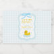 Baby blue gingham baby shower with a hand drawn bow. Water droplets frame a rubber duck surrounded by bubbles
