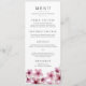 Menu folha única, tamanho: 10,16 x 22,86 cm, papel: Semi-brilho Básico