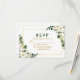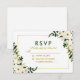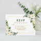 Cartão RSVP de Casamento Verde Floral de Watercolor - Quadro Dourado