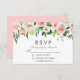 Cartão RSVP de Casamento Silver de Blush, Cor Floral, Cor-de-Vidro Floral - Cor-de-rosa