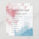 O gênero elegante revela um cartão de jogo de festa com abertura de cor d'água em rosa e azul com brilho dourado falso. Um jogo perfeito para jogar durante o chá. Enumera o essencial do bebê e aos hóspedes para adivinhar o preço. Quem quer que adivinhe o preço mais próximo ganha!