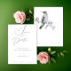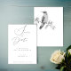 Esses belíssimos casamentos brancos e negros salvam os cartões de data são projetados com um beija-flor pintado à mão. Personalize com os detalhes do seu dia especial para convites memoráveis clássicos.