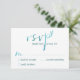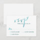 Um cartão RSVP de querido com a palavra 'rsvp' definida em uma face de caligrafia aquática moderna e um coração de aquarela e uma tipografia simples e limpa sobre fundo branco. Uma variedade de paleta colorida de azul lacrimogêneo. Simples e doce. Design pelo The Spotted Olive™.