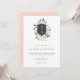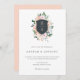 Convite de casamento elegante, com uma crista de ouro rosa de cor d'água cercada por flores pinceladas, cor de pêssego e rosa e folhagem verde esmagadora. Personalize com suas iniciais dentro da crista do monograma. Personalize com suas informações ou clique em "Clique para personalizar mais" para editar estilos de fonte, tamanho e cores.