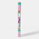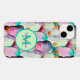 A pretty watercolor pattern in pink. purple, teal, green and yellow depicting stylized prickly pear cactus in bloom with yellow flowers. I added a round shaped monogram and name text template in matching colors and contrasting overlapping fonts for you to personalize with your own name and initial. #watercolor #cactus