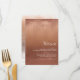Este menu de recepção de casamento moderno é ligeiramente informal, com sensação quente e pessoal, e apresenta um design abstrato, aquarela, semelhante a reflexos na água. Esse exemplo tem uma paleta de cores gradiente de pêssego pálido a terra escura. Personalize com as iniciais da noiva e do noivo, a data do casamento e os detalhes usando o modelo fornecido. Procure ID774 para ver o conjunto de correspondência completo e opções de cor adicionais.