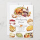 Este convite de Ação de Graças apresenta um banquete de Ação de Graças, incluindo peru torrado e todas as aparas. O convite é simples e elegante, com fundo branco e texto preto. .