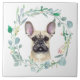 Um retrato de aquarela adorável de um pequeno dentro francês Bulldog a uma coroa azul verde-esverdeada é a característica neste azulejo decorativo e útil. Perfeito para quem ama um francês!