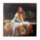 John William Waterhouse a senhora do azulejo de Shalott. Pintura a óleo em canvas desde 1888. A senhora de Shalott é uma pintura bonita do Pre-Raphaelite de uma cena do poema do senhor Tennyson de Alfred do mesmo nome. A pintura descreve a senhora condenada da navigação de Shalott para Camelot em um bote drapejado com uma tapeçaria que vermelha bonita teceu ao cair no amor com Lancelot. No barco sente três velas e um crucifixo de que a menina olha afastado. A senhora ela mesma é vestida em uma luz de fluxo - vestido medieval azul bordado com ouro. Seu cabelo é castanho-aloirado claro e guardara a corrente do barco enquanto pressiona longe da doca nos juncos e nas almofadas de lírio além. Um grande presente para fãs de John William Waterhouse, dos Pre-Raphaelites, da pintura inglesa romântica, e da legenda Arthurian.