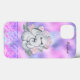 Flores modernas e elefante em fundo holográfico com seu nome.
