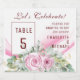Wave Rosa e Número de Mesa Floral com Vinho Piscan