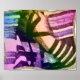 Pintura digital ondulada de mão e tefillin, contra um talento. Tonalidades arco-íris.