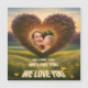 Diese bezaubernde Magnetkarte verbindet Natur, Liebe und persönliche Erinnerungen zu einem wunderschönen Kunstwerk. Vor einer grünen Wiese mit zarten Blumen ragt ein herzförmiger Strauch mit lila Blüten in den Raum, in dessen Mitte du dein eigenes, personalisiertes Foto in Herzform einfügen kannst. Ob ein Familienfoto oder ein besonderer Moment – das Bild wird von der aufgehenden Sonne erleuchtet und verleiht dem Design eine besondere Wärme. Als besonderes Highlight wandert der dreifache Schriftzug „WE LOVE YOU“ dem Herz entgegen, betont die liebvolle Botschaft und macht es zu einem idealen Geschenk für Mütter. Alternativ kannst du den Schriftzug „I Love You“ wählen, was dieses Kunstwerk auch für Paare zu einem romantischen und persönlichen Geschenk für Hochzeiten, Valentinstag oder Jubiläen macht.
