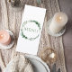 Present your wedding meal with refined simplicity using this elegant greenery wedding menu card. Featuring a soft botanical wreath of eucalyptus and delicate foliage, this design frames your menu header with natural beauty while maintaining a clean, modern layout for your courses. The combination of graceful typography and airy spacing creates a timeless, sophisticated look that enhances any garden, outdoor, or classic wedding setting. Perfect for showcasing starters, main courses, and desserts in an organized and stylish format, this menu card adds a polished finishing touch to your reception tables. Easily customize all menu details to reflect your unique dining experience.