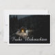 Die Karte zeigt eine stimungsvolle, winterliche Szenerie mit einer kleinen, beleuchteten Holzhütte inmitten eines verschneiten Waldes. Die warme Lichtquelle im Inneren schafft einen schönen Kontrast zur dunklen, friedlichen Umgebung. Der elegante "Feliz Natal"-Schriftzug em Weiß verleiht dem Motive eine festliche Nota. 🎄 ✨ Deutsch
