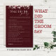 What Did the Groom Say BridalShower Game, Burgundy
