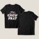 This direct black shirt offers clear guidance: "When You Don't KNOW What To Do PRAY". The colorful text highlights the power of prayer. It is a bold, modern reminder of spiritual reliance and guidance during moments of confusion and indecision.