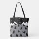 Whimsical black cat illustration tote bag featuring playful cats under a starry night sky and crescent moon. A cute yet gothic-inspired design perfect for cat lovers, Halloween style outfits, and everyday use.