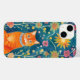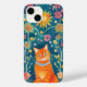 A capa de telefone branca para os amantes de gatos apresenta uma tábua laranja rodeada por flores de arte folclórica. Aquarela digital criada com o uso de software de geração de IA.