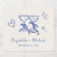 Romantic light cream sparkling wine labels for your wedding featuring whimsical hand-drawn blue illustrations of a heart, stars and wine glasses, and the names of the bride and groom in a fun playful blue script.