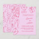A whimsical hand-drawn wedding invitation featuring playful sketch-style icons on a soft blush pink background. This fully customisable design allows you to personalise all wedding details, including names, date, time, venue, and wording. Perfect for couples seeking a cute, romantic, and modern stationery style.