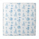 Playful seagull doodle pattern ceramic tile with surfing birds, seashells, and sun icons in clean blue line art. Light, fun, and beach-ready aesthetic with a carefree coastal vibe. Ideal for surfers, beach lovers, and summer lifestyle fans.
