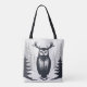 Embrace the magic of winter with this all-over print tote bag showcasing a whimsical, gothic owl with antlers set against a serene, snow-covered landscape. The striking black and white design brings an air of mystery and elegance, perfect for winter lovers who appreciate unique, artistic fashion. Ideal for carrying your essentials or as a gift for someone who cherishes nature and fantastical art.