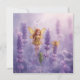 Among blooming lavender fields, three magical beings gather — a golden-winged fairy, a playful sprite, and a leafy companion.