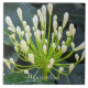 Ceramic tile that features the fascinating photo image of white, unopened flower buds of Agapanthus, commonly known as Lily of the Nile and African Lily. An intriguing, floral image! Makes a pretty kitchen trivet. Select your ceramic tile style.