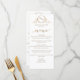 Elegant double-sided wedding menu card with a delicate, fine hand-drawn monogram with the couple's initials. Ability to add your own name(s), date, and menu description on the front and monogram initials. Ability to add the exact same menu on the front and the back, or to add on the back your menu in another language, ideal for bilingual events. Handwritten calligraphy detail in faux golden foil. Design in a white background and a golden hue monogram and text. Back in white. Ability to change the front and/or back's background color by selecting "customize further". Part of our "Elegant Calligraphy Minimalist Wedding" collection, with a variety of coordinating products available. Visit the entire collection by clicking on the collection title below on the product page.