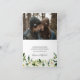 Botânica Chic, obrigado, notas que permitem que expresse sua gratidão em estilo elegante. Frente apresenta um quadro de rosas e peônias de Flor Branca em tons de aquarela marfim, com uma mensagem personalizada em caracteres de caligrafia de cinza (mostrados com "obrigado") e seus nomes em um fundo branco. Personalize o dentro com uma mensagem e assinatura pré-impressas personalizadas, juntamente com uma foto de casamento, ou exclua para deixar o dentro do vazio. Projetado para coordenar com a nossa coleção de casamento White Bloom.